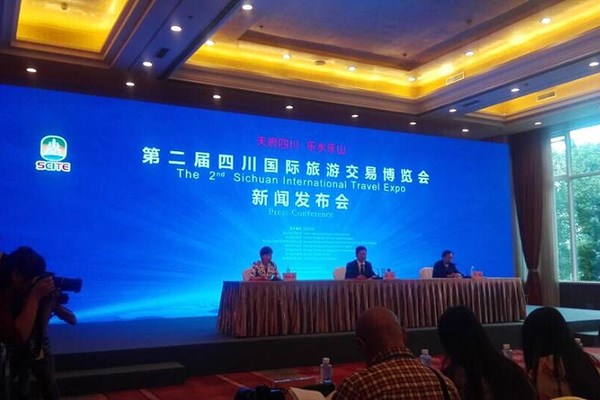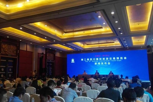 9月24日下午,第二届四川国际旅游交易旅游博览会第二次新闻发布会在峨眉山红珠山宾馆举行。出席新闻发布会的有乐山市市委常委、常务副市长田文, 省旅游局副巡视员吴勉,乐山市市委常委、宣传部长赖淑芳。9月25日上午,来自30多个国家和地区的旅游界嘉宾就将云集峨眉山市,第二届四川国际旅游交易博览将会在这里隆重开幕。