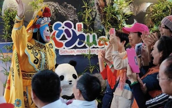 公众推广活动现场用大熊猫、竹林、海螺沟冰雪图片等元素布置,充分凸显了四川特色,现场穿插变脸表演和互动游戏,激起民众对四川冬季旅游产品的热情,现场气氛活跃,参观市民络绎不绝。
