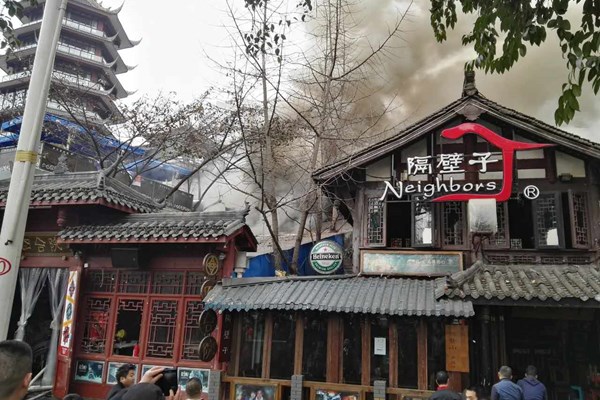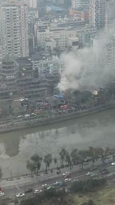 “九眼桥又被点着了”,酒吧一条街澳丽滨江酒店厨房大火,目测损毁严重!目前未听闻人员伤亡。