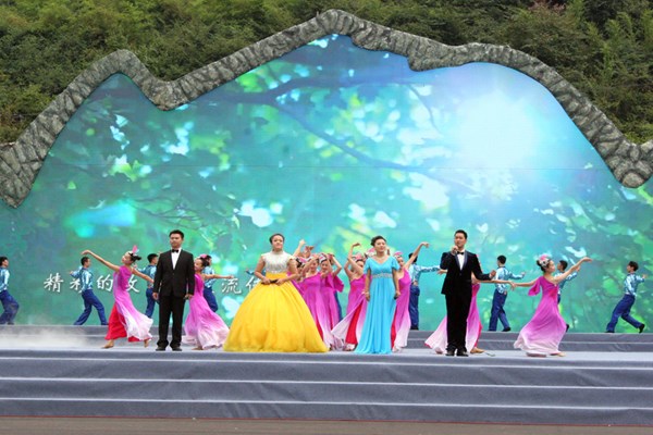 在开幕式现场,鼓声嘹亮,歌舞升平。上百名中学生端云盘、打灯笼,共同表演了川东民间舞蹈《云童舞》。随后,《多彩华蓥》、《熊猫家园》、《千年之恋》等一个又一个精彩的歌舞表演,将开幕式推向高潮,充分展现了华蓥山景区特色和当地人文风光。
