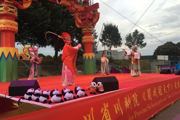 维也纳当地时间9月4日,来自四川的32只色彩斑斓、憨态可掬的大熊猫吸引了嘉年华上所有游客的注意。它们或身披蜀绣图案,或仿若额头要“飞出”金沙太阳神鸟,送上了来自“大熊猫故乡”的亲切问候。除了彩绘熊猫,现场还特地安排熊猫人偶与维也纳公众互动,发放四川旅游宣传资料,并通过扫二维码关注四川旅游资讯网的方式赠送特色熊猫旅游纪念品,激起了当地民众对四川旅游的浓厚兴趣。