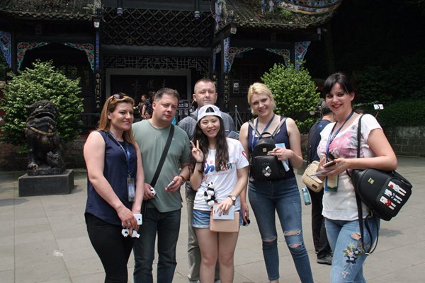 在启动仪式上,我省优秀导游代表王安安、景区讲解员邓霞用生动活泼的小故事宣传了文明旅游和旅游文明行为公约。随后,她们和志愿者代表、四川省中国国际旅行社有限责任公司副总经理邓芳女士、四川商旅国际旅行社有限公司总经理龚凡先生、成都熊猫旅游集团国际旅行社有限公司副总经理李雨寰女士一起,带领全体参加人员共同宣读了文明旅游倡议书,号召全省旅游行业从业者及广大游客、市民,文明旅游,从我做起,从现在做起!