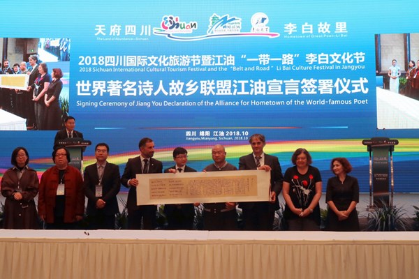 10月24至26日, 2018四川国际文化旅游节暨江油“一带一路”李白文化节(以下简称“两节”)在绵阳江油青莲李白诗歌小镇举行。