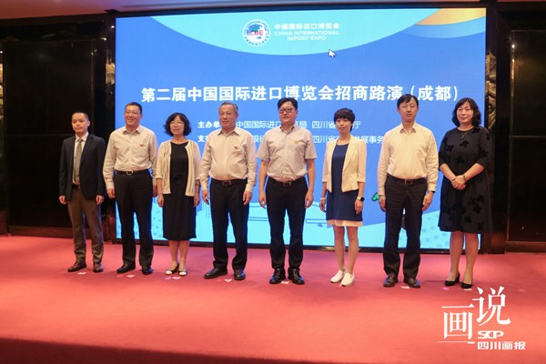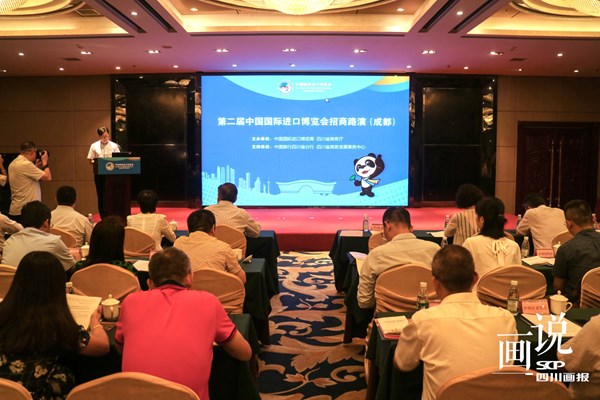 2019年8月14日,第二届中国国际进口博览会招商路演在天府之国—成都举办。这是第二届进口博览会举办的第10场招商路演,也是首次向长江上游地区采购商开展线下招商宣传。活动重点对科技生活展区和食品及农产品展区进行宣传推介,主要面向四川地区的民营企业、中小企业和行业协会。