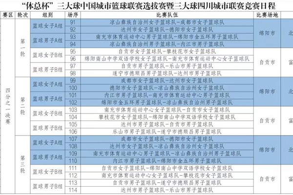 7月3日,三大球四川城市联赛(篮球项目)四分之一决赛将分为A、B组在绵阳北川和自贡富顺进行赛会制单循环比赛,小组前2名进入半决赛。其中,绵阳北川赛区男女A组竞争尤为激烈,颇具看点。