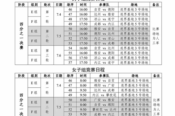 7月4日,三大球四川城市联赛(足球项目)四分之一决赛将在国家南方·连界足球竞训基地进行,与排球、篮球一样继续采取赛会制单循环赛制,小组前2名出线。受高温影响,比赛时间进行了一定调整,关注四川体育俱乐部有限公司、四川省足球协会微信公众号,掌握赛事动态,观看比赛直播。(四川省足球协会供图)