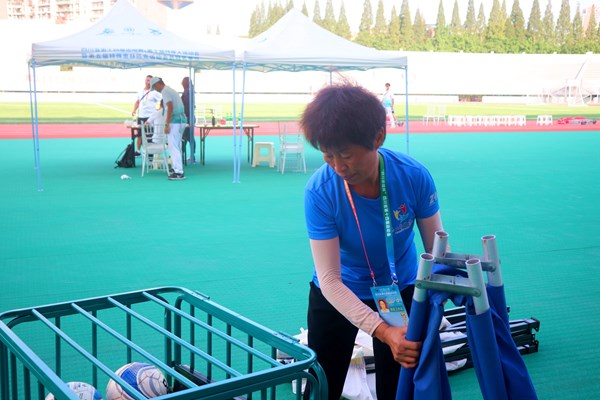 省运会各项赛事完美推进的过程中离不开每位赛事工作人员的无私奉献,在比赛赛场上“小海棠”志愿者负责赛场上的琐事。而有这样一群人,他们不但协助着“小海棠”志愿者的工作,还得负责比赛场地的一切事务,大家私下都称呼他们为赛场“管家”。