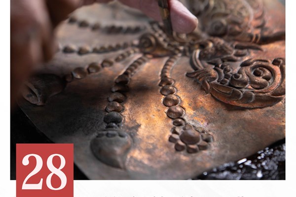 阿坝藏族金属制品加工主要材料包括铁、金、银、铜等,这些材料被广泛制作成各种生活用品、装饰品和宗教用品。该工艺加工流程复杂而精细,锻造师需要根据需求和创意进行产品设计,确定产品的形状、尺寸、图案。然后再选择合适的金属材料进行初步切割、打磨处理。锻造时,利用锻造工具对金属材料进行加热、捶打等,使金属材料形成所需形状和结构。整个过程对锻造师的经验和技艺要求极高,锻造师需要不断调整火候和捶打的力度。造好后的金属制品再用刻花、錾刻等技法进行雕刻和装饰,所饰图案多为藏族传统的吉祥图案。而后再进行焊接、打磨抛光,一件精美的制品便完成了。阿坝藏族金属锻造技艺具有独特的艺术风格和文化内涵,其中所用图案和造型多取材于藏族传统文化和宗教信仰,它们承载着藏族人民的历史记忆和情感传承。