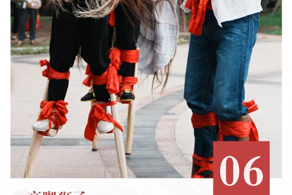 高脚狮子表演新颖灵活,一头狮子2人舞动,一人顾头一人顾尾,同时还有两人逗宝,一人扮作笑和尚,一人扮作灵猴。所有表演者都需脚踩高跷踏着锣鼓点子嬉戏舞动。表演没有固定模式和动作,随意性较强且略显夸张诙谐,极具地方特色。