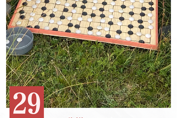 藏棋棋盘有17路,289个点,占有145个点赢一个子。棋子分为黑白两色,比赛前要在棋盘固定位置交叉点上摆放12子(黑、白各6个),在“三·三”点上放一个,然后在三路上每间隔3个点放一个座子。藏棋参赛人数较为灵活,既可2人对下,也可4~6人对下。比赛一开始由白棋开局,这也体现了藏族人对白色、光明的崇敬。弈前,双方需猜先,黑白子各拿一个掷于棋盘上,单独正面向上的一方先走。若是某一块活棋的棋形类似于藏族“吉祥八宝”图案的一种,则在终局时奖励8个子。在博弈之时,双方还可用言语刺激对方,鼓舞自己,整个比赛热闹非常。