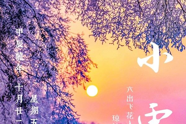 2024年11月22日,当太阳到达黄经240度时,第20个节气,小雪随之到来。古籍《群芳谱》中曾记载:“小雪气寒而将雪矣,地寒未甚而雪未大也。”《月令七十二候集解》中也载有:“小雪,十月中。雨下而为寒气所薄,故凝而为雪,小者未盛之辞。”这一时段,寒潮与强冷空气频繁出现,气温越来越低,然而寒气未深,降水量也并不丰沛,还没有到严冬大雪纷飞的时日,故以“小雪”称之。