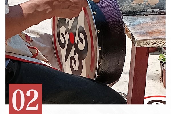 羌族羊皮鼓在制作上多有讲究。鼓身多以杉木制作,单面蒙以羊皮,工艺精细,古朴大方,极富民族风格。近代,随着文化表演的需要,羊皮鼓被广泛应用于舞蹈、音乐等表演。一面羊皮鼓的制作,要历经鼓圈制作、鼓膜制作、蒙鼓皮等程序。鼓身取自杉木干体,由它制成的鼓具有一定张力,容易让鼓皮保持一样的紧度和韧度,发出的鼓声更加响亮清脆而且多年保持不变。鼓圈多为韧性好、易成型的竹子,打湿后拿到火边烤,边烤边曲,直至制成弧形片状,再按照鼓的大小,以稍窄一端为头,将材料紧密地圈成一个圆圈。鼓膜制作是选用前肩背部新鲜的羊皮,最好是选用老羊皮,这样发出的声音更为清爽。羊皮经去表、削脂、削薄、防腐等工序,按照需要的规格大小进行切割,分块进行拉紧固定,风干备用。一般做鼓要用风干1~2年的羊皮,这样做出来的鼓,比较耐用,有的甚至可以使用10年以上。蒙鼓皮是个关键活,鼓皮要张弛一致,厚薄均匀,这样制出来的鼓,音色更为动人。