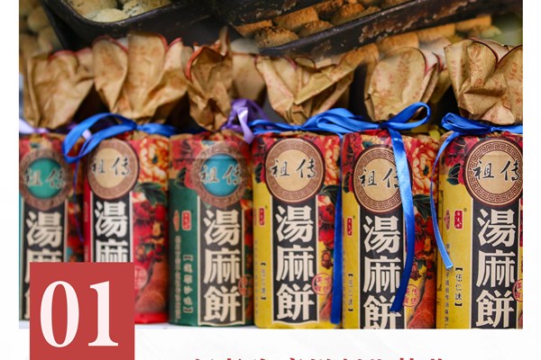 汤长发麻饼采用本地上等面粉、白糖、冰糖、菜油、芝麻等为原料,经制皮、制心、制油、制酥等特殊工艺程序后,制作成圆形,然后粘上脱皮芝麻,用炭火烘烤而成。其产品全部采用手工操作,保鲜时间可达半年以上。由于恪守祖训,汤长发麻饼一直以来以其火工精当,黄而不焦,皮酥心脆,香甜化渣的特点,深受广大群众喜爱。