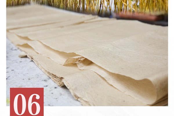 黄麻纸是利用竹子、苎麻等混合生产的一种纤维纸,是我国古代的第一种染色加工纸。相传最初由东晋著名的医药学家葛洪发明,因为其纸质粗厚,耐久防蛀,多用于抄写经文和作画。黄麻纸在唐朝时期的造纸水平和纸张质量已达到相当高度,受到当时文人和画家如韩滉等人的使用和推崇。“黄麻纸制作技艺”经过两千多年传承,不断地改造制作工艺,到目前为止形成了一套较为定型的造纸工艺流程,主要有砍料、办料、下料、下滑料、舀纸、压纸、起纸、晒纸、割纸、扎纸等工序。与一般土法造纸比较,最大的不同是用料中加入了黄麻等材料。