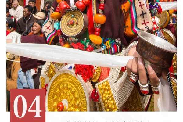 呷咪服饰是藏族文化的载体之一,其服饰的每一个部位镶的每一丝金边细条都有着深刻的含义,精湛的工艺技能包含着深厚的民族文化内涵、强烈的民族色彩和突出的民族特点。