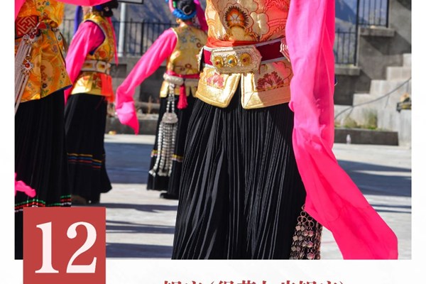 九步锅庄是继承和浓缩了甘孜州各县锅庄和县域内其他锅庄后自编自导的民间歌舞,广泛流传于民间的各种节日、聚会、婚嫁活动中,成为了当地的一种时尚的民间活动,代表了吉祥和昌盛,是甘孜州独具特色的锅庄舞蹈。