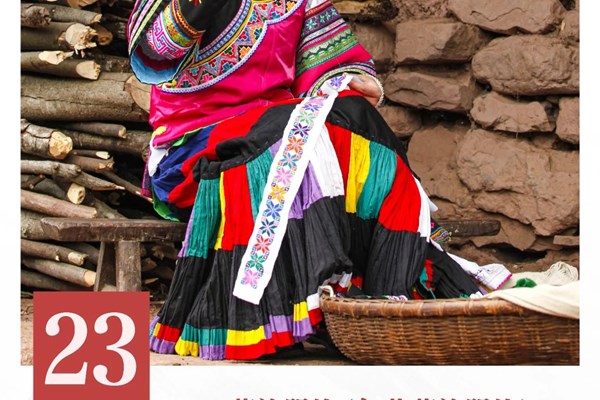 无论男女,都配有自捻蚕丝腰带,年轻女子还多一条绣花腰带。尔苏妇女的荷包“朵部啦绣” 造型别致,有精美的刺绣,悬挂于右侧腰间。尔苏人崇尚洁白,以白为美,基色以白、 蓝、绿为主,再配以各色修饰,服装往往鲜艳亮丽。