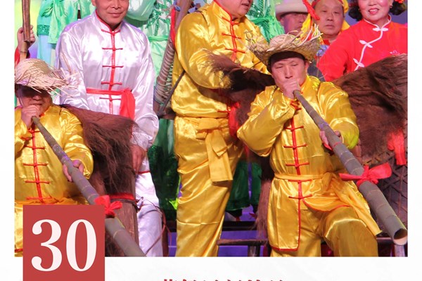 荥经民间竹号音色圆润、高亢、悠扬、悦耳、穿透力强,又被称为“过山号”,这种自制乐器采用嫩慈竹为主要材料,经选料、伐竹、锯竹、削榫、斗榫、削哨嘴、灌水试吹等过程制作而成。制作荥经民间竹号时,按从大到小的顺序接牢20多节削好的大小各异的竹筒,最终制作成1米长左右的喇叭筒状竹号,其音色悠扬悦耳、高昂脆亮,地方特色浓郁。