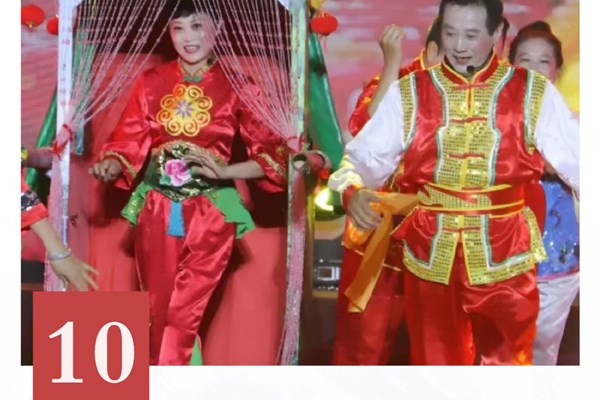 在表演峨眉堂灯戏时,需用到以胡琴为主的弦乐,唢呐、笛子、箫等为主的吹奏乐以及大锣、梆子、碰铃、皮鼓、钹等为主的打击乐,表演形式有唱有白,有歌有舞。演员人数视剧情而定,多为“丑”“旦”搭配的二人台式。峨眉堂灯戏的调式以“五声为主”,即“宫”“商”“角”“徵”“羽”,唱腔高亢悠扬,帮腔洪亮激越,道白则全部采用当地方言。