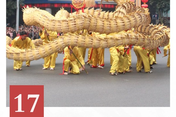 峨眉席草龙制作流程及方法:一般是先做龙头,然后是用竹条做身架,即龙骨,再用席子做龙皮,席草做龙脊,最后是龙尾。最初,草龙只有三节,后来发展为九节,象征“久称久远”,再后来发展到数十节。