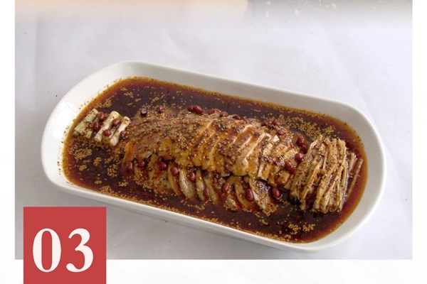 周记棒棒鸡在传统经营中,选用优质放养土公鸡,整鸡煮熟后,用木棒敲打刀背助力宰片,切片分明,刀刀见骨。宰片时将整鸡分为大货和小货,鸡头、鸡翅、鸡尖、鸡爪分别宰成连刀为大货。其余部分为小货。全部切片后,按整鸡的形状盛入土陶盂钵,拌上熟油辣椒、花椒、食盐、鸡汤等佐料。