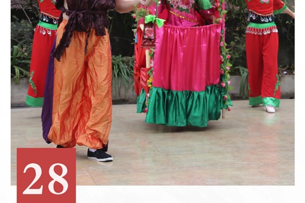 角色:由一名“车芯”和两名或四名逗车人组成,另配锣鼓、乐器和若干帮腔人。男扮女装的“车芯”碎步妖娆扭动,逗车人提马灯执绸扇围聚调笑;