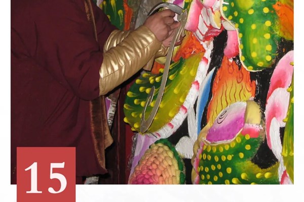 酥油花是流传于理塘县的一种特殊雕塑艺术。最初是一种陈列供品的宗教仪式,内容严格限于宗教题材,依托寺庙代代传承。随着时代发展,酥油花逐渐吸收了大量藏族民间艺术的养分,在题材和表现形式上不断丰富。长青春科尔寺作为该技艺的核心传承地,至今仍以师徒方式延续制作传统,目前已传承至第四代,在理塘地区已有超过两百年的发展历史。