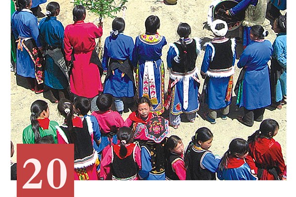 整个“苏布士”活动在释比的指挥下依序进行,释比主要是做太平仪式,共有九章。在做仪式过程中,释比还要针对不同需求,跳羊皮鼓舞。