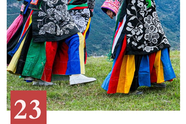 玛达咪山歌发展至今,已由原来的抒情山歌增加到了现在的劳动夯歌、丧歌、婚仪歌等,在不同的场景中抒发着对家乡的热爱、对劳动的热情、对逝者的哀悼、对新婚男女的祝福。这种山歌每首为四句,多以抒情歌为主,词曲相配,每首各具风格,多为领唱和独唱。在衬词特征上,每首以“玛-达-咪-哎……”作为开头和结尾。此外,玛达咪山歌多为三段式唱腔,其唱腔深沉幽怨,情感丰富。