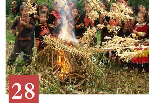 3.者普果:即撵魔王仪式。彝族民间传说,人间流行病与村寨不幸灾祸皆由潜伏的“者普”恶魔所致,因此“阿依美格”当晚,全村男女老少需手持火把,将“者普”赶出村寨。
