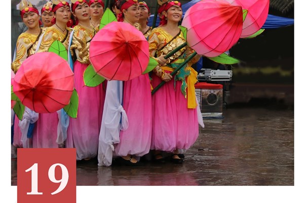 船山桃子龙所舞的龙身为脱节的桃子,因此表演时,舞者们可任意往来穿梭、此起彼伏,似龙在云海里欢腾、沉浮。最初,船山桃子龙多为16人表演(8男8女),其中1位男性表演者持宝戏龙,其余7位男性表演者各持龙的一节(龙头1人、龙身5人、龙尾1人)舞动,8位女性表演者各拿两朵“云彩”于龙身两侧舞动。随着时代的变迁,如今的船山桃子龙发展到64人表演(大桃龙队2组,每组16人,小桃队2组,每组16人)。它的代表性套路包括:玉女献桃、桃龙出宫、小鹿跳栏、双龙同欢、桃龙拜寿、左右穿花、顽童骑龙、同贺龙门等。