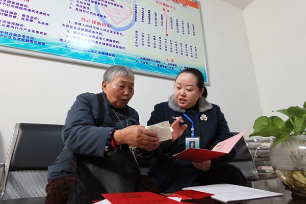 2014年11月26日,四川省泸州市龙马潭区法律援助中心的工作人员在特兴镇河湾村32社独居老人李泽成家里为其提供赡养案件的法律援助。