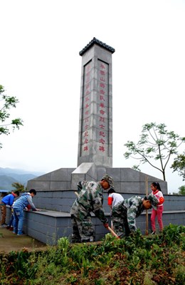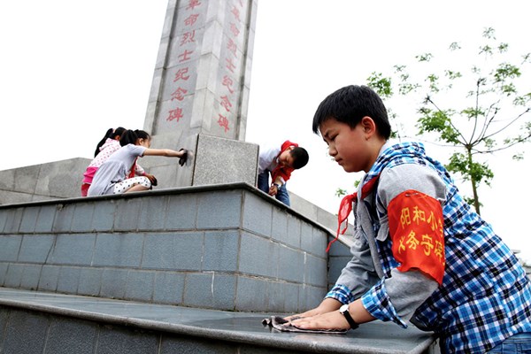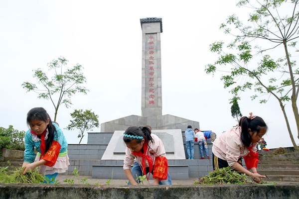 四川省“华蓥山游击队革命烈士纪念碑”自2002年从华蓥市阳和街上迁到阳和小学旁后,阳和小学每一届六年级便推选出10名少先队员,组成“红领巾护碑队”,义务打扫烈士纪念碑的清洁卫生,呵护碑旁的树木花草,维护建筑设施。10多年来,“红领巾护碑队”队队相传,用敬仰和怀念护卫着永垂不朽的先烈们的英灵。